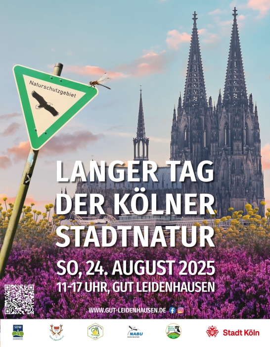 Seit 2016 findet der „Lange Tag der Stadtnatur“ in Köln statt. Im Fokus der Veranstaltung liegt eine wissenschaftliche Vortragsreihe mit anschließender Podiumsdiskussion (#rundestunde) zum Thema „Tiere und Pflanzen in Kölner Naturschutzgebieten“. Außerdem erwarten die Besucher:innen Führungen und Wanderungen rund um das Gut und die Greifvogelschutzstation sowie weitere Umweltbildungsangebote. Verschiedene Austeller:innen wie K.R.A.K.E., AWB, RheinEnergie, NABU, Stadt Köln, die rollende Waldschule und der Bienenzuchtverein Porz informieren über ihre Angebote. Für die Kleinen gibt es verschiedene Mitmachaktionen, wie Nisthilfen basteln, Bogenschießen, Dosenwerfen oder Kräutersalz herstellen und einen Strohspielplatz. Für das leibliche Wohl ist gesorgt.